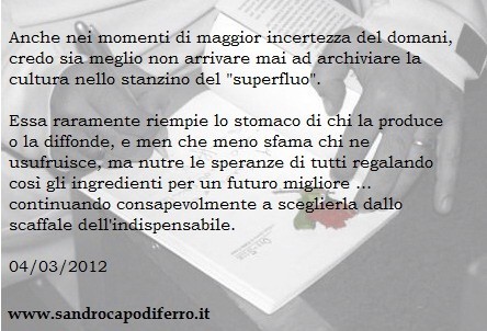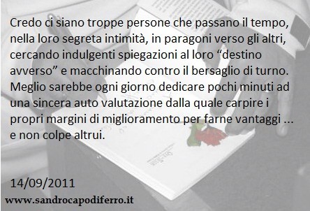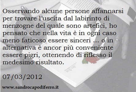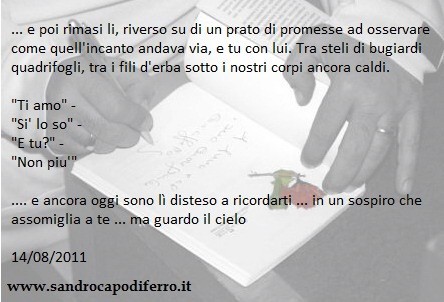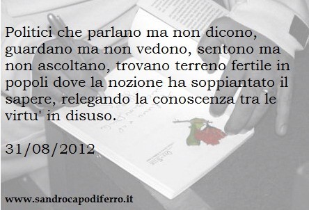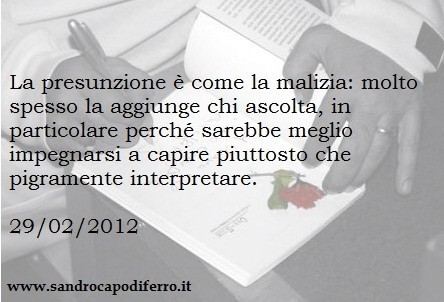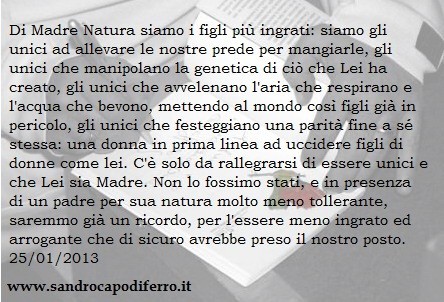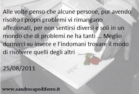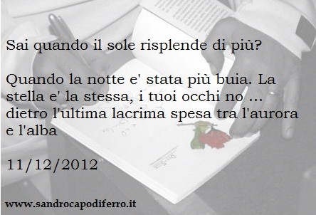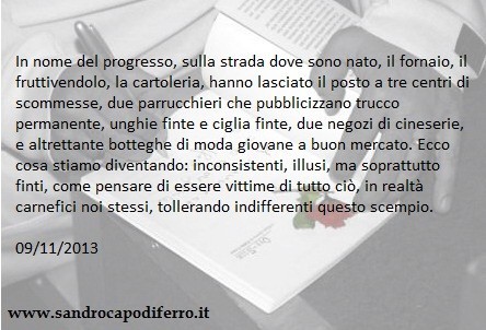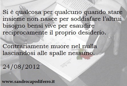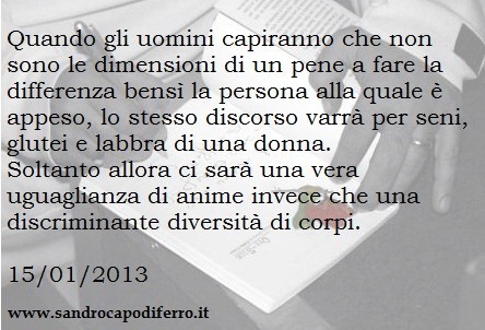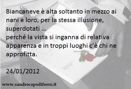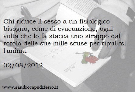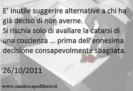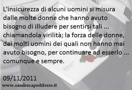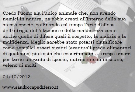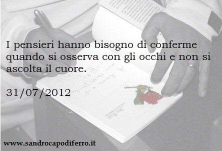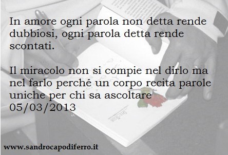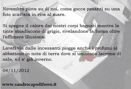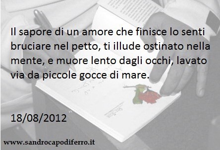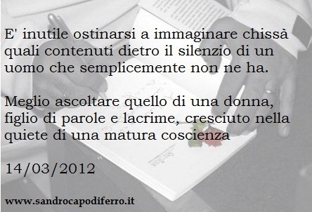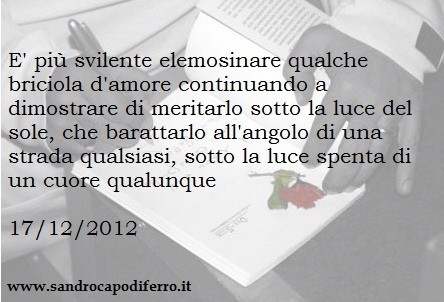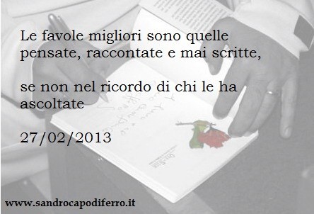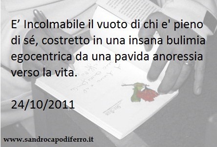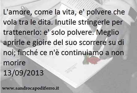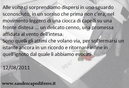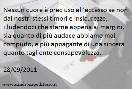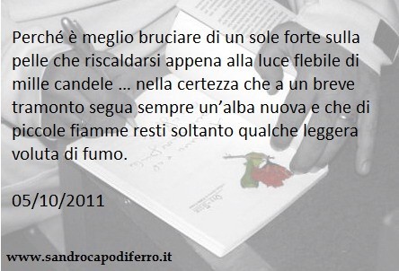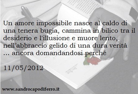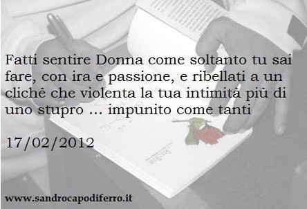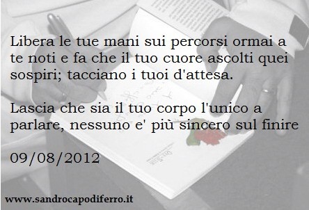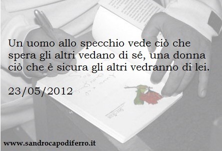 “Quando la scrittura scorre veloce quanto i pensieri, dalla loro nascita al loro senso di compiutezza, è lì che nasce un aforisma”. Fotografie scattate in pochi attimi, dense di significato e passione per la parola e il sentimento che la muove, sono questi gli elementi che compongono “l’aforismario” dello scrittore Sandro Capodiferro. Soggetti fiabeschi o contemporanei si muovono in poche righe, come in un romanzo sussurrato, per fermare quell’immagine che resta scritta nel cuore, senza voler insegnare nulla, bensì suggerendo una via, un’intuizione o uno sguardo laterale, per un diverso punto di vista: quello che di solito nasconde meglio ciò che in realtà vuole rivelare. “Urlami dentro col suono della tua voce, o silenzio, e le parole mie che io più temo” (tratto dal romanzo “Peccaminosa”)